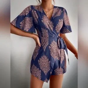 Boho Tropical Leaf Print Wrap Romper S, M, L, XL NWOT