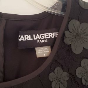 Karl Lagerfeld Paris Black Floral Applique Leather Lace Shift Dress Size 4
