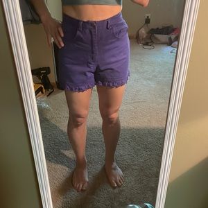 VINTAGE purple cotton shorts eyelet trim zip high rise EUC