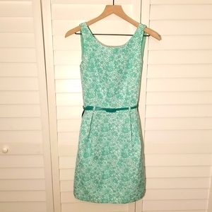 Vintage, knee length, turquoise, floral size 2/4 dress with belt