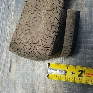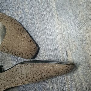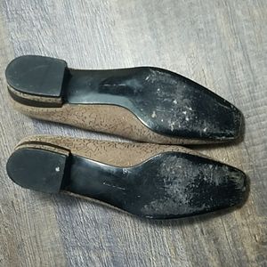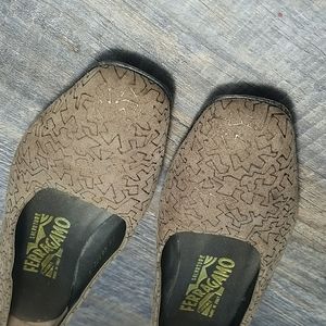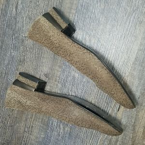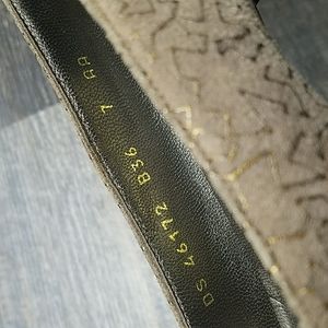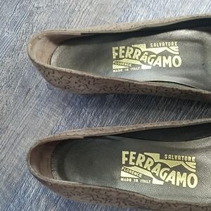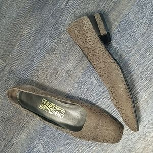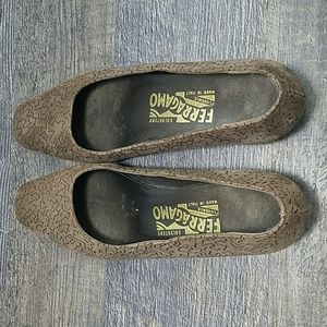 Salvatore FERRAGAMO Size 7 AA Tan Suede Leather Gold design Low Heel