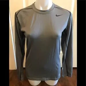 Men’s Crew Neck Nike Pro Combat Dry-fit Grey Fitted Hyperwarm Long sleeve Top size Small! Excellent Condition! 88% polyester 12% Spandex