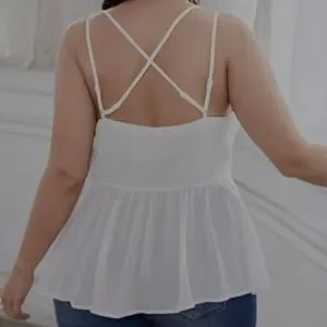 Boho Plus Size Floral Lace Criss Cross Tank Top White