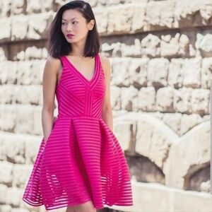 Flower by Charm's Paris Red Striped Mesh Mini Dress