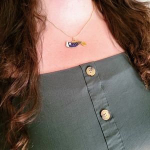 Koi fish have intrigued and inspired for centuries. They are rich with symbolic significance, especially in Japanese and Chinese culture and history. Known universally as a symbol of strength, perseverance, bravery, dedication, and love. Enthusiasts collect both the living carp in ponds as well as artistic representations such as these lovely and lightweight necklaces.