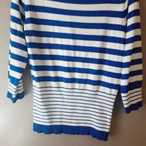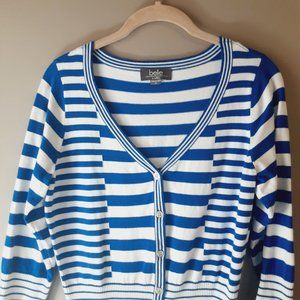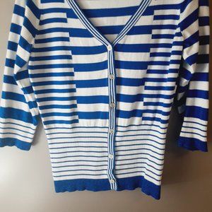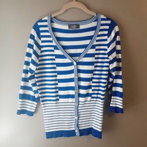 Belldini Striped Cardigan, V-neck, 3/4 Sleeve, Royal Blue & White | Medium