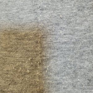 3/4 Sleeve. Some pilling on the lower right side that can be removed with a fabric shaver (See last photo).
