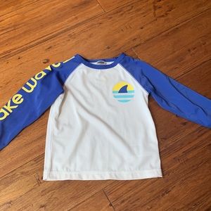 18-24 months swim trunk/rash guard bundle. All shirts have mesh lining. A few of the shorts have a stain, shown in pictures. Sea creature and pirate shirts have faux drawn string, they do not cinch up. Dinosaur shorts have a drawn string that cinches up. Great condition.