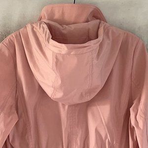 Size: Medium. Colour: Blush. 100% polyester. Length: 34 inches. Chest: 38 inches. Waist: 34 inches. Hips: 40 inches. Drawstring hood. Elasticized waist at back. Zipper closure. Two side zip pockets. Snap buttons on both sides of bottom hem. Water resistant. Wind resistant. Soft, lightweight shell. Retails for $208 USD (plus tax). Excellent condition! New with tags. Accepting offers. Bundles of two or more items receive an automatic 15% off🛍. Feel free to message me if you have any questions about this item🙂.
