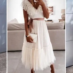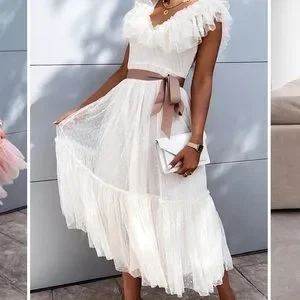 I bought this dress for a bridal shower in two different sizes and ended up wearing something totally different. This is an adorable, fun, frilly dress and is perfect for the summer or any special occasion 💗