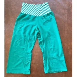 Four Leaf Clover Capris, stretchy with thick elastic waistband, four leaf clover on left side, flare leg, size medium. 🍀