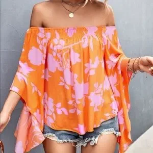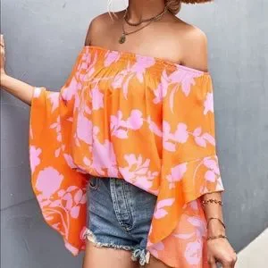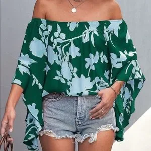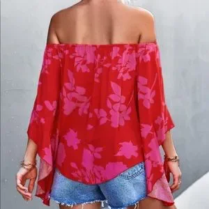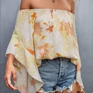 Boho Floral Print Off Shoulder Top Blouse