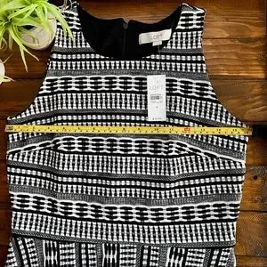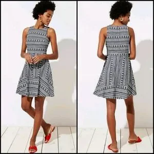 LOFT Black & White Geo Textured Flare Sleeveless Dress