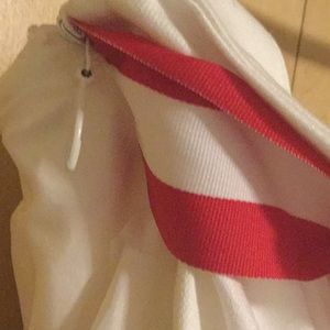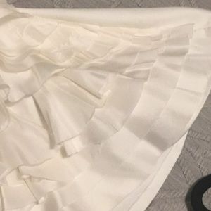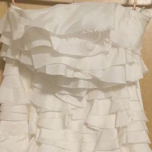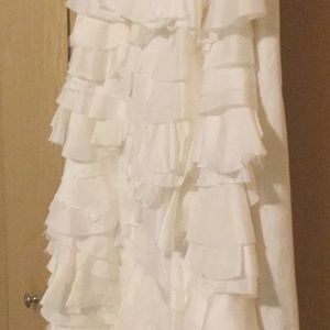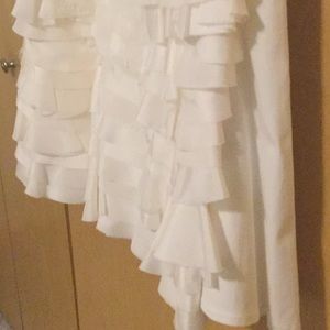 One Sunny Day Strapless Cotton Dress White Maggie Marilyn strapless dress with ruffles throughout, pleats and belt accent at back.