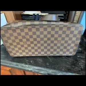 Iconic Ebene print. Two sturdy leather handles and gold tone hardware. Adjustable shoulder strap. No rips or tears. Minor scratches on hardware. Non smoker and original owner. I have original receipt