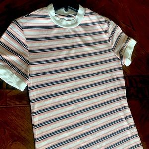Striped bodycon round neck short sleeve slim fit high stretch material 65% polyester 30% cotton 5% spandex