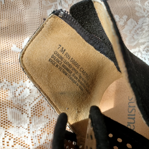 Susina Kinston Perforated Suede Peep Toe Wedge Bootie, Black