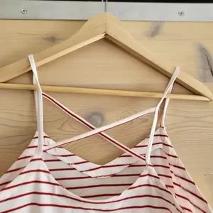 NWOT red striped adorable cami tank with eye catching strappy back detail. Never worn, never washed, size small, true to size. Measurents on request