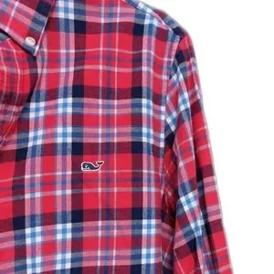 Vineyard Vines Mens M Slim Fit Ginger Rum Plaid Whale Shirt