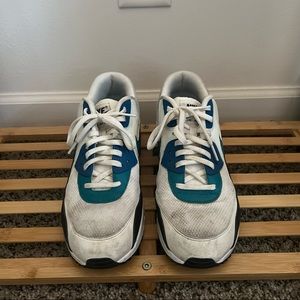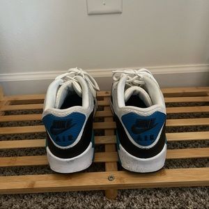 white, black, blue, & turquoise Nike Air Max 90s! still in great condition + some small stains in the front :)
