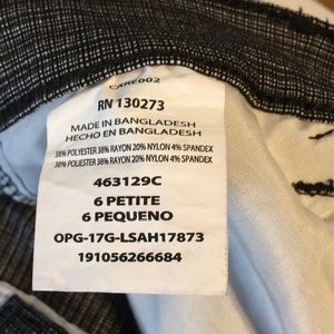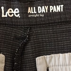 LEE all day pant straight leg woman’s size 6 petite. Buttons and zips in front has two pockets in front and two fake pockets in the back. They have stretch to them and they’re black with white in them. Never worn And is in excellent condition with no stains or tears. Inseam is 29 1/2