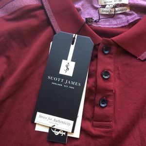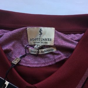 Scott James NWT Men’s Burgundy Collar Polo Shirt with 3 Buttons in front. Size XLARGE. Measurements laying flat may vary slightly. Let me know if you have any questions. Smoke free Home.
