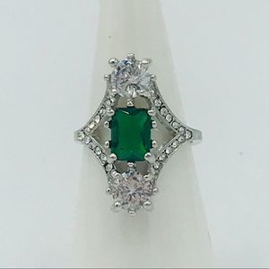 FAUX EMERALD & DIAMOND COCKTAIL RING