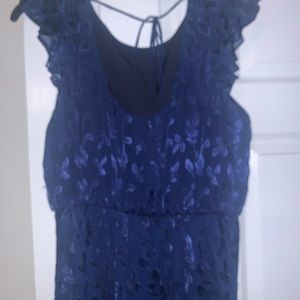 Brand new with tags navy blue asymmetrical Amanda Uprichard dress. Style called the Ibiza Dress. Polyester stretch fabric on a pull on style. Elastic waist detail with back neck tie. Ruffled sleeve detail. Beautiful dress. Size medium