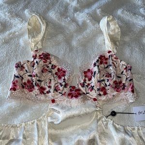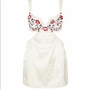 For Love & Lemons beautiful festival rose silky slip dress with a bust enhancing underwire top and sexy cutout back & sides.