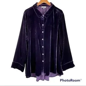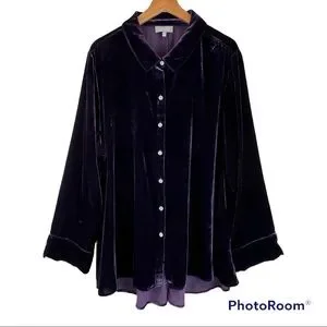 🇺🇸SOLD🇺🇸 Habitat Mandarin Velvet Shirt Top XL Purple