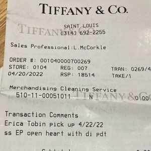 Retails for $825. See pics for more details and how it is listed on the Tiffany’s site.