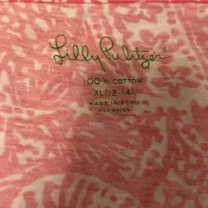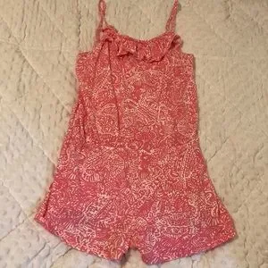 Lily Pulitzer hot pink romper. Girls XL/12-14. Lightly worn. Floral swirl pattern, tiny bow on the left strap. No signs of wear or stains, lightweight. Perfect for the beach!