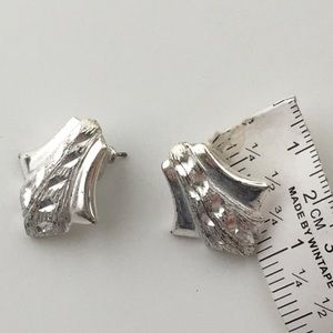 Classic Silver Leaf Motif Textured Stud Earrings