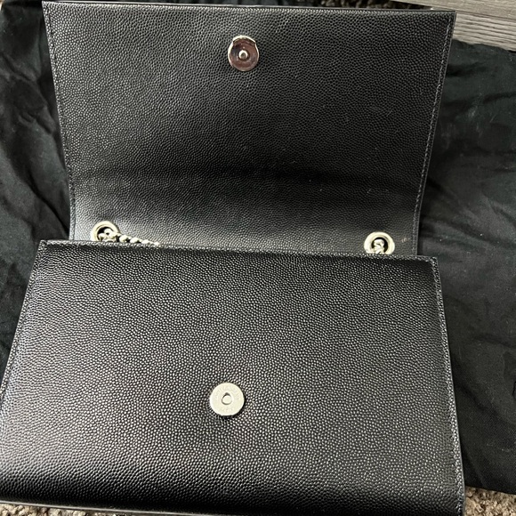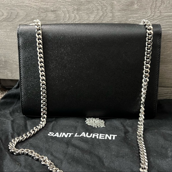 Black YSL purse with silver chain
