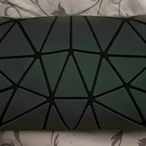 Holographic color change luxshe wallet. Only used once or twice. In darker light it is a very pretty dark gray, but the brighter the light, the brighter the colors.