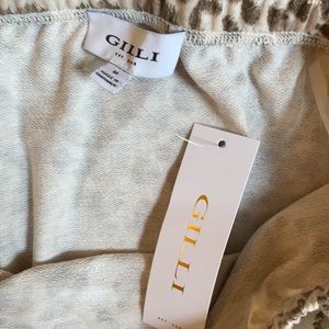 New with tags, never worn. Strapless jumpsuit with elastic stretchy tie to cinch waist. Tapered around the ankles. Strapless part is elastic and stretchy as well