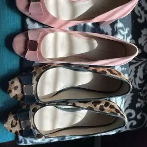 These pink Suede pair and the leopard pair which would be tan white and black dyed hair.