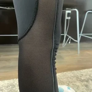 These are super cute, I just no longer where them. They are still in great condition and were worn numerous times. They are high waisted and cropped with mesh details on the bottom. They also have a reflective strip as seen in the pictures.