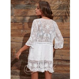 White Lace Coverup Dress Tunic Bohemian Short