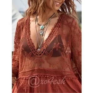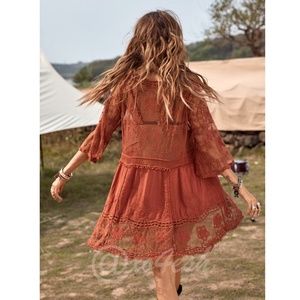 Burnt Orange Lace Coverup Dress Tunic Bohemian Short