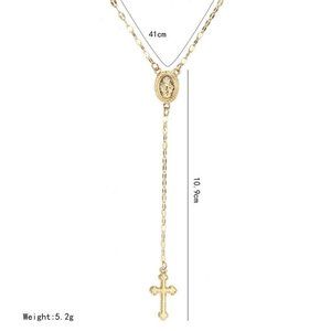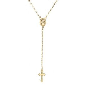Rose Gold Cross Pendant Necklace Rosary Madonna Coin Necklace