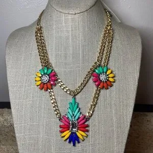 Gold toned. Multicolored beading and rhinestones. Approx 19” chain length