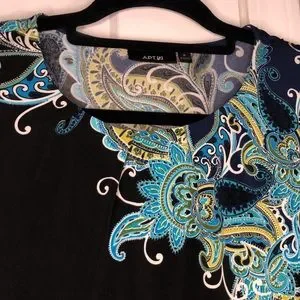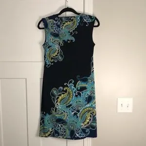 Perfect summer date night dress! EUC perfect condition! Bold paisley print nods to boho chic and wrinkle fee stretchy fabric for extreme comfort! Apt 9 size small, black with teal and green paisley print