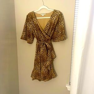 Super cute leopard dress from local boutique, gently worn and size L. Fits a size 12-14. Would be perfect for date nights, dressing up, or dressing down for events.