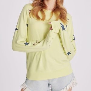 🔥WILDFOX🔥SUPERSTAR RAGLAN BAGGY BEACH JUMPER SWEATSHIRT SUNNY LIME RARE