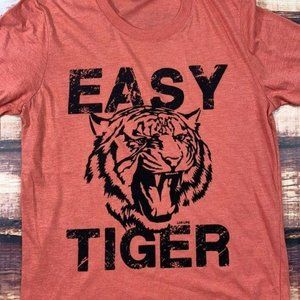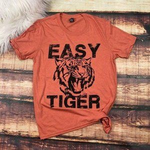 Trendy graphic tee with “Easy Tiger” saying
