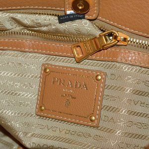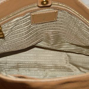 Prada Vitello Daino BN2097 Logo Signature Tan Leather shoulder Bag Gold Brass