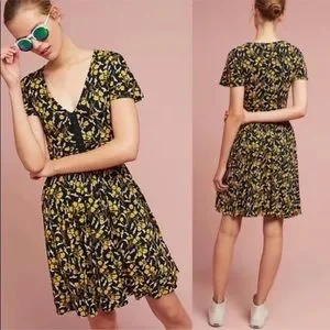 Anthro Maeve Black & Marigold Yellow Floral Swing Sundress Dress