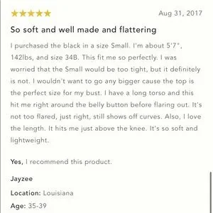 A2A: 15” Waist: 14” Length (shoulder to hem): 30” Pullover Style Very Stretchy