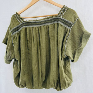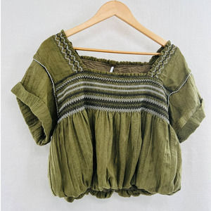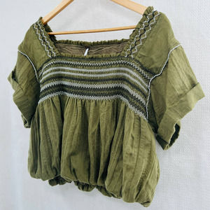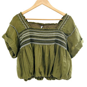 FREE PEOPLE Wandering Skies Green Top size medium bohemian prairie spring